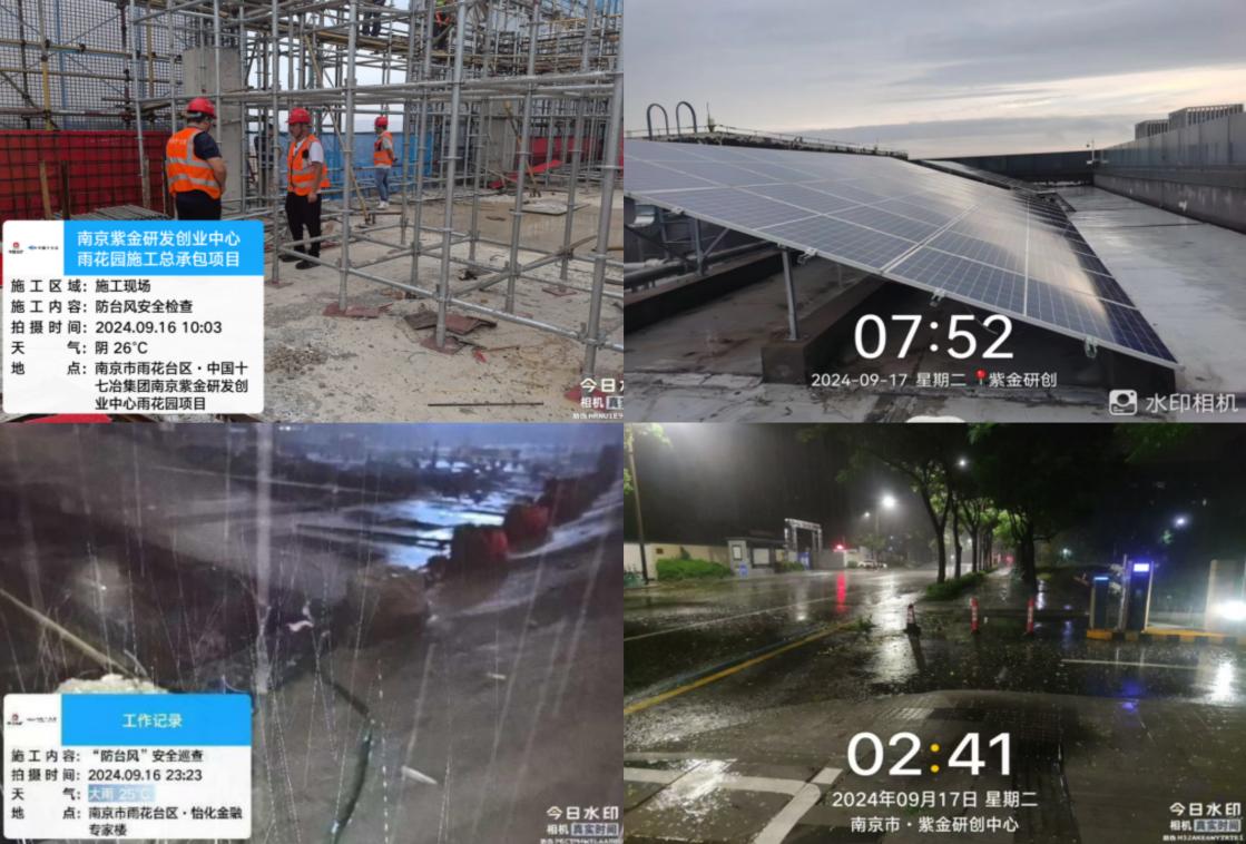臺風來臨前,園區(qū)和工地立即進入"戰(zhàn)時狀態(tài)",成立應急指揮小組,密切關注臺風動態(tài),組織專業(yè)團隊對易積水區(qū)域、各類設施及排水系統(tǒng)進行全面排查,儲備應急物資,通過視頻監(jiān)控與現(xiàn)場巡查,進行全方位、全天候值班值守工作。此外,施工現(xiàn)場全面停工,加固相關設施,組織安排18臺水泵,對現(xiàn)場基坑等位置進行積水抽排。臺風過后,園區(qū)及工地第一時間開展復工安全檢查,對設施、設備穩(wěn)定性進行確認及修復,清理積水與斷枝落葉,恢復園區(qū)運營環(huán)境,確保在建工程有序重啟。